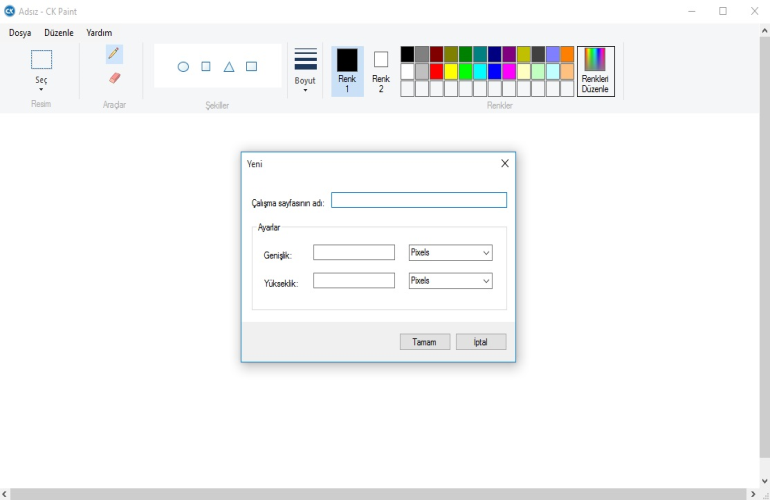 CK Paint yazmış olduğum bu proje basit çizim programıdır. Çizilen resmin kayıt özelliği de mevcuttur.