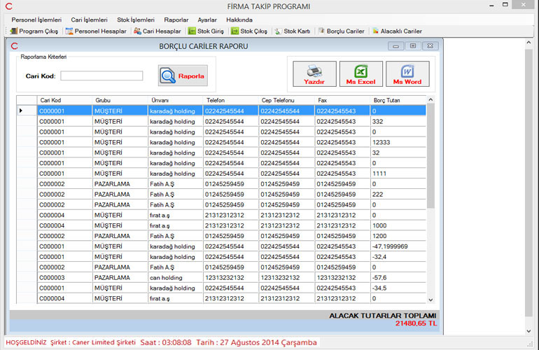 Firma içerisindeki stok takip işlemleri, cari işlemleri, faturalama gibi işlemleri yapmaktadır.